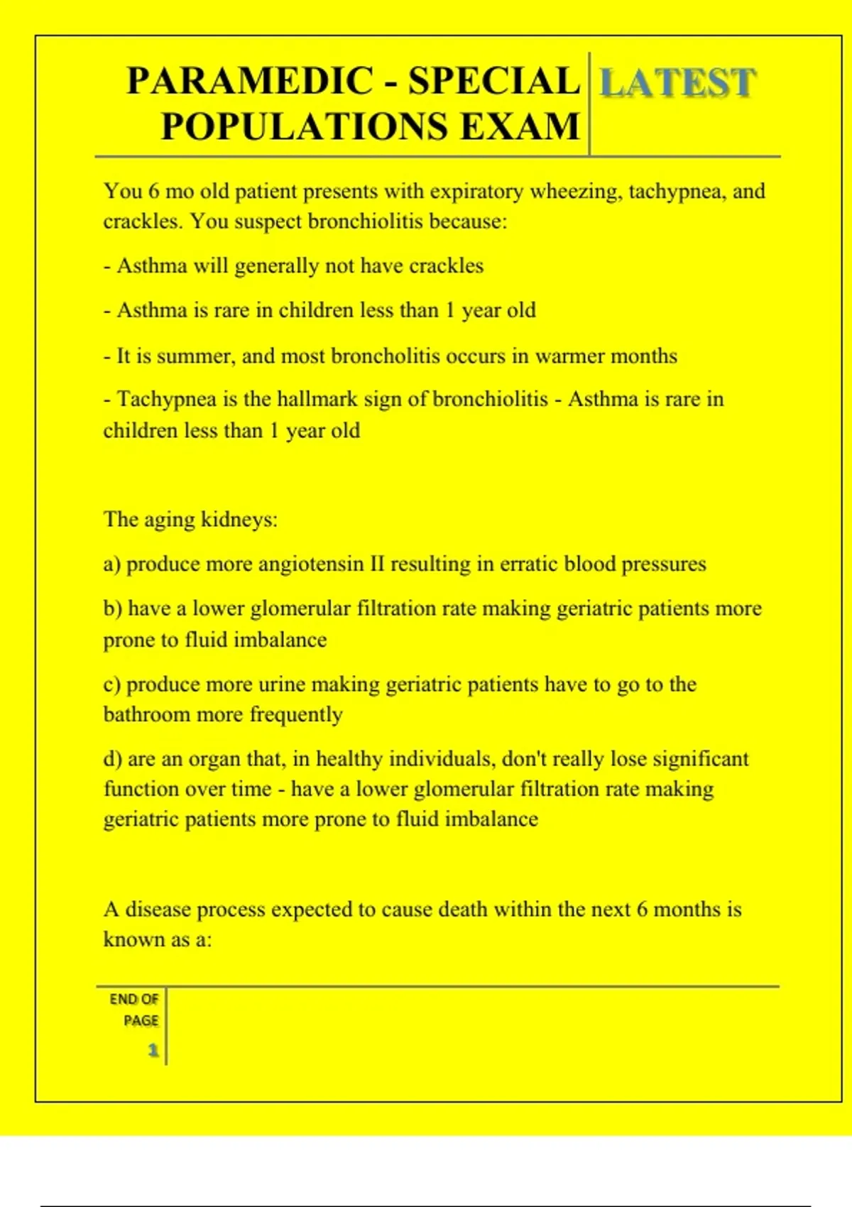 PARAMEDIC - SPECIAL POPULATIONS EXAM QUESTIONS AND ANSWERS 2025