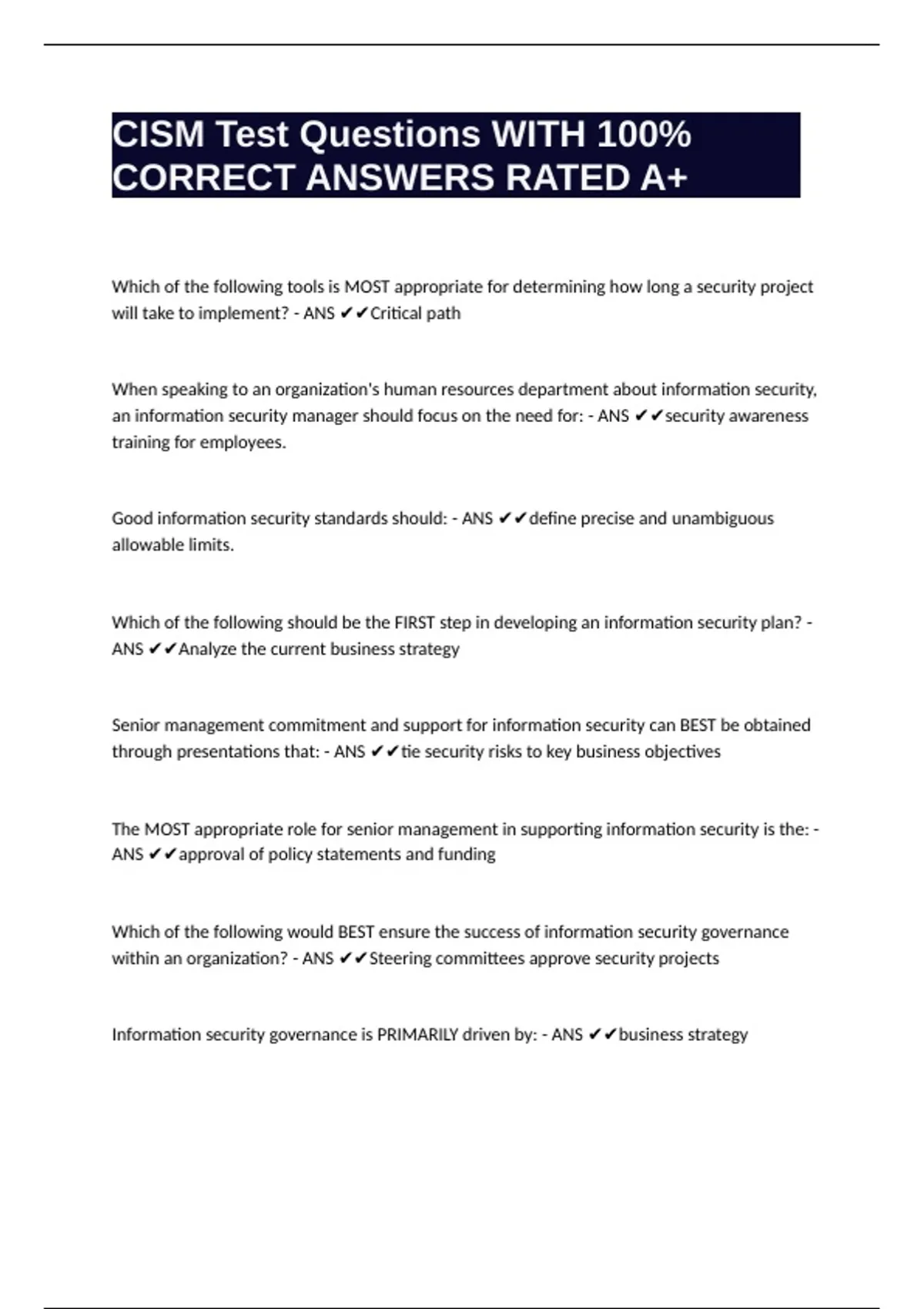 CORRECT ANSWERS RATED A+