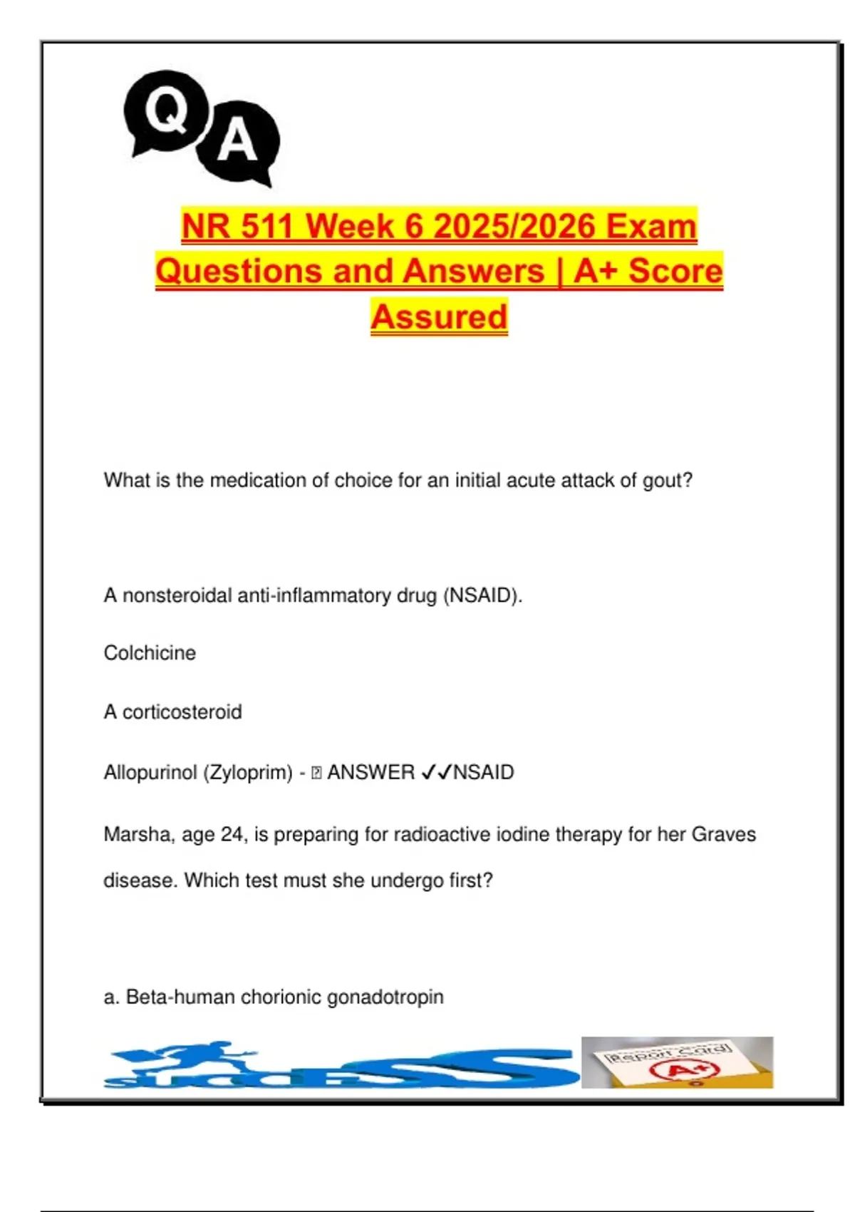 Allopurinol (Zyloprim) - 🧠 ANSWER ✔✔NSAID