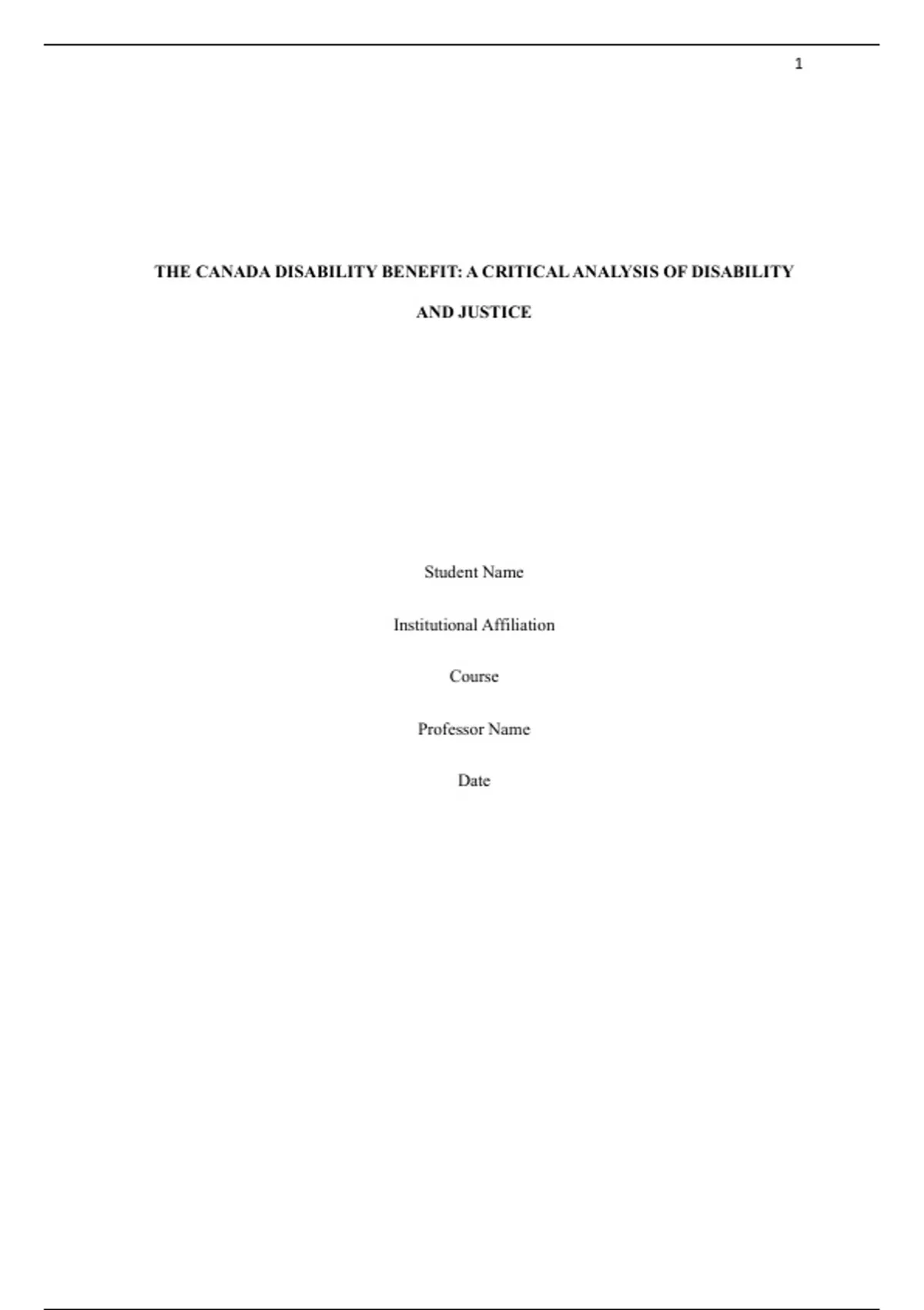 THE CANADA DISABILITY BENEFIT: A CRITICAL ANALYSIS OF DISABILITY