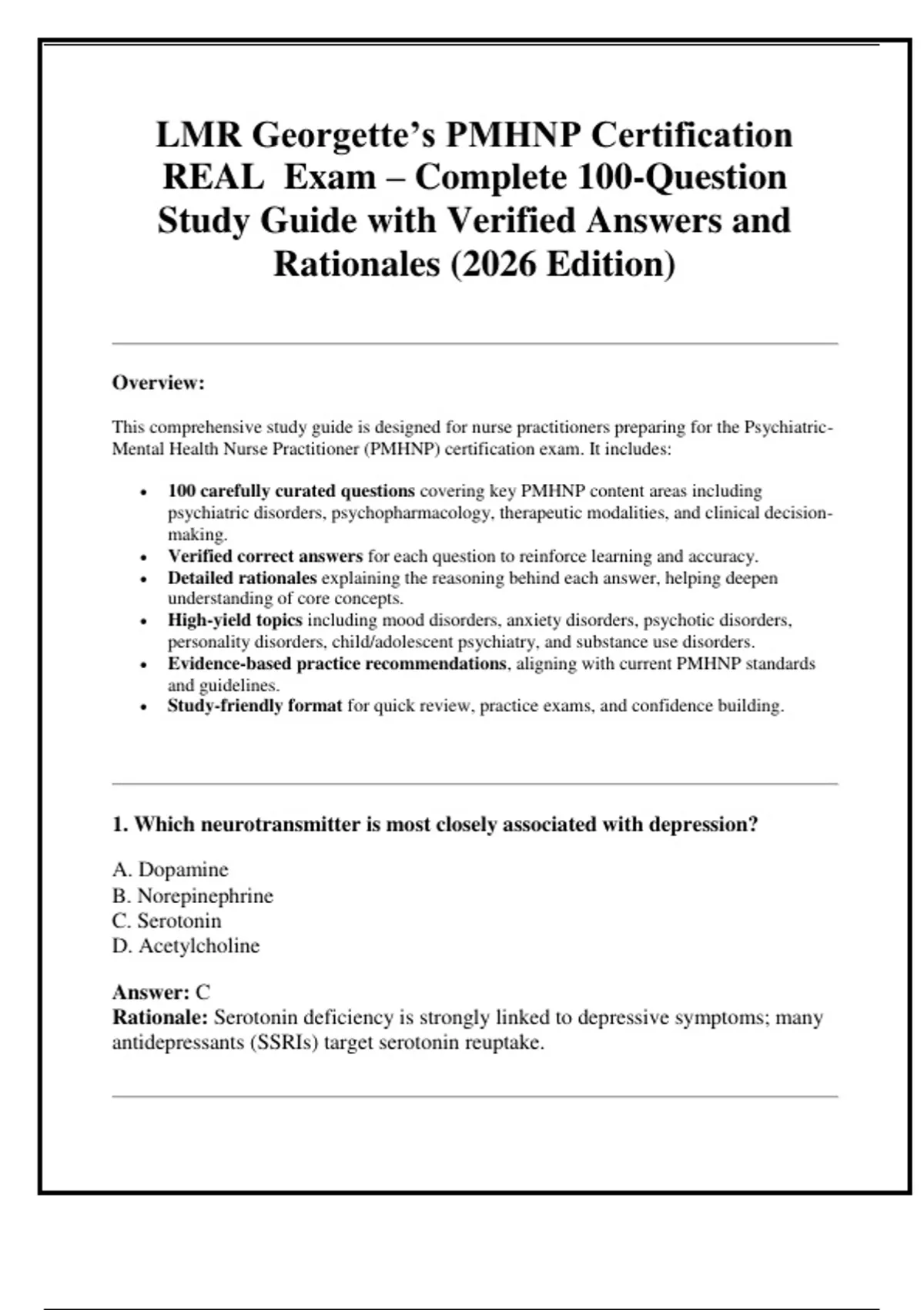 This comprehensive study guide is designed for nurse practitioners preparing for the Psychiatric-