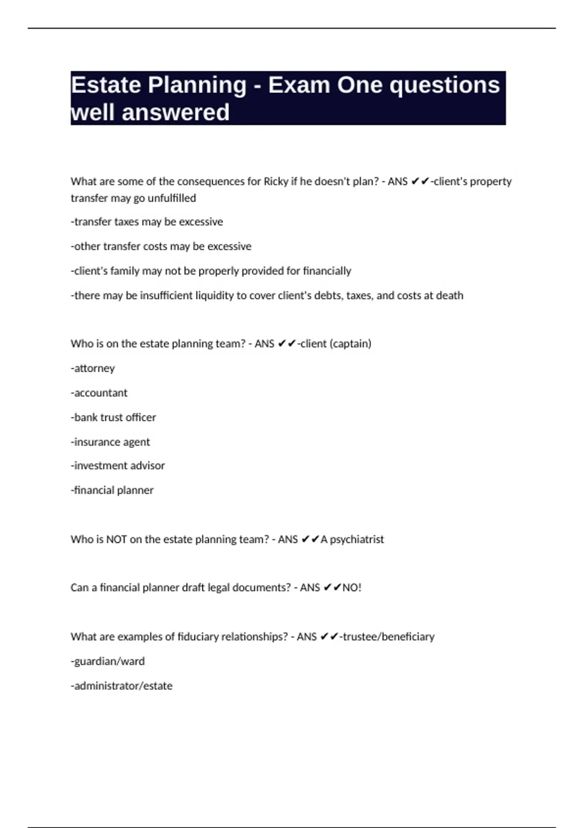 Who is NOT on the estate planning team? - ANS ✔✔A psychiatrist