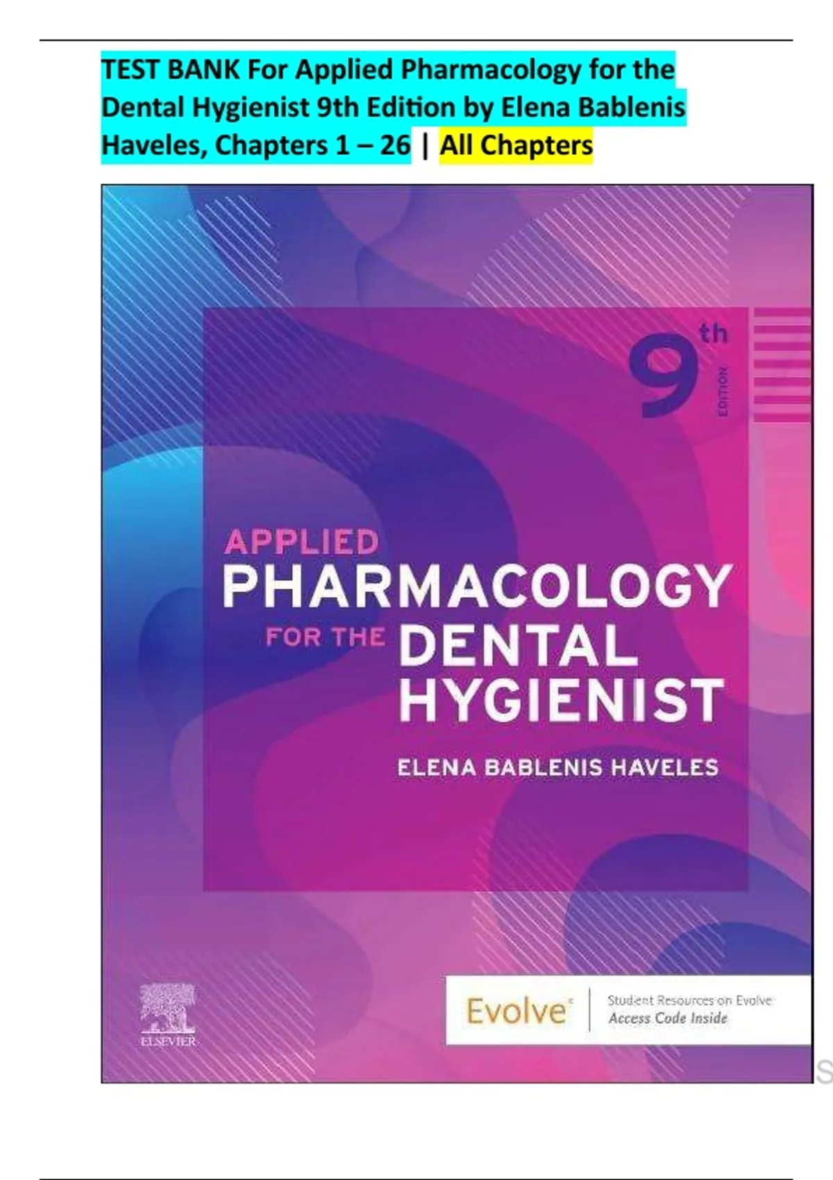 Test Bank for Applied Pharmacology for the Dental Hygienist, 9th Edition by Elena Bablenis Haveles || ISBN: 9780323595094|| Complete Updated 2025–2026 Dental Hygiene Pharmacology Test Bank with Verified Questions and Answers