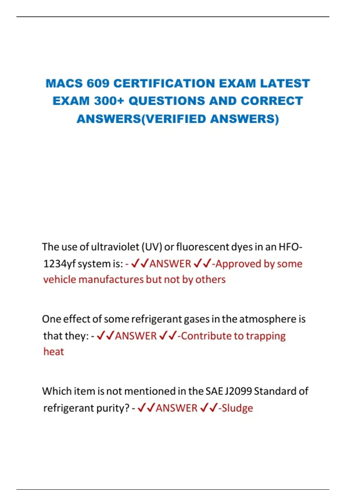 MACS 609 CERTIFICATION EXAM LATEST EXAM 300+ QUESTIONS AND CORRECT ANSWERS(VERIFIED ANSWERS)