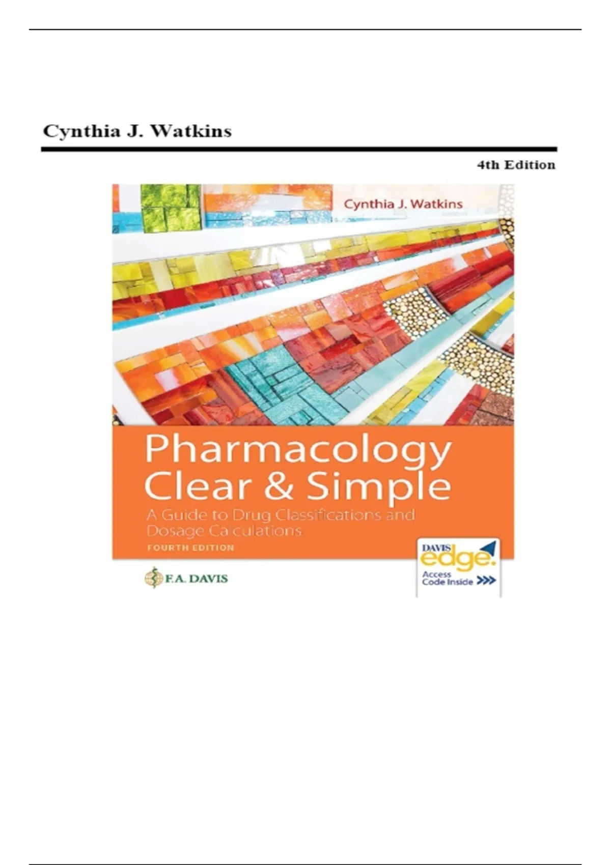 TEST BANK FOR Pharmacology Clear and Simple: A Guide to Drug Classifications and Dosage Calculations Fourth Edition by Cynthia J. Watkins COMPLETE GUIDE ALL CHAPTERS COVERED 100% VERIFIED A+ GRADE ASSURED!!!!! NEW LATEST UPDATE!!!!!