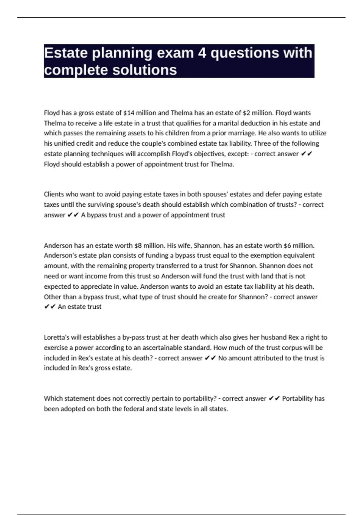 estate planning techniques will accomplish Floyd's objectives, except: - correct answer ✔✔