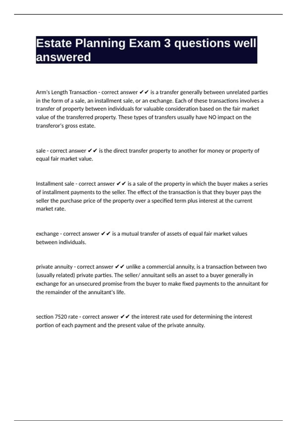 sale - correct answer ✔✔ is the direct transfer property to another for money or property of