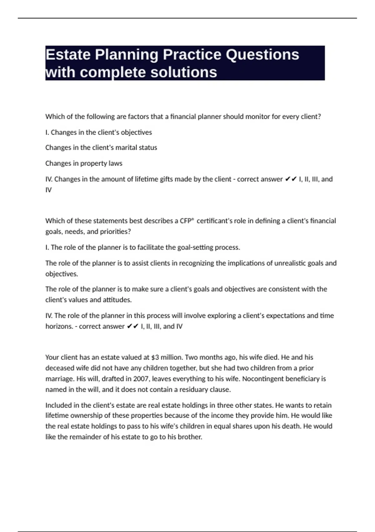 IV. Changes in the amount of lifetime gifts made by the client - correct answer ✔✔ I, II, III, and