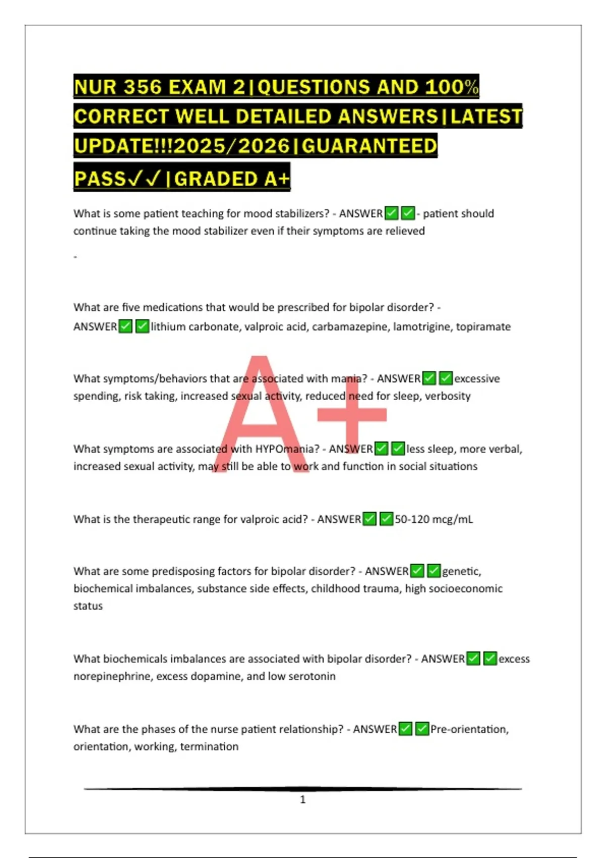 NUR 356 EXAM 2|QUESTIONS AND 100% CORRECT WELL DETAILED ANSWERS|LATEST UPDATE!!!2025/2026|GUARANTEED PASS|GRADED A+