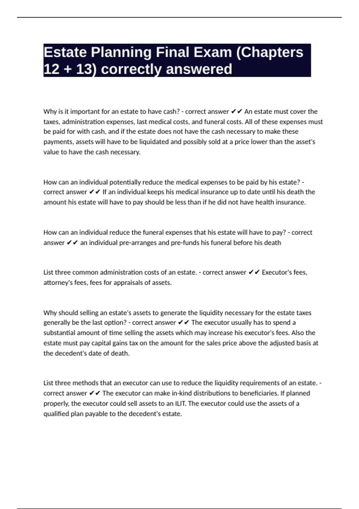 Why is it important for an estate to have cash? - correct answer ✔✔ An estate must cover the