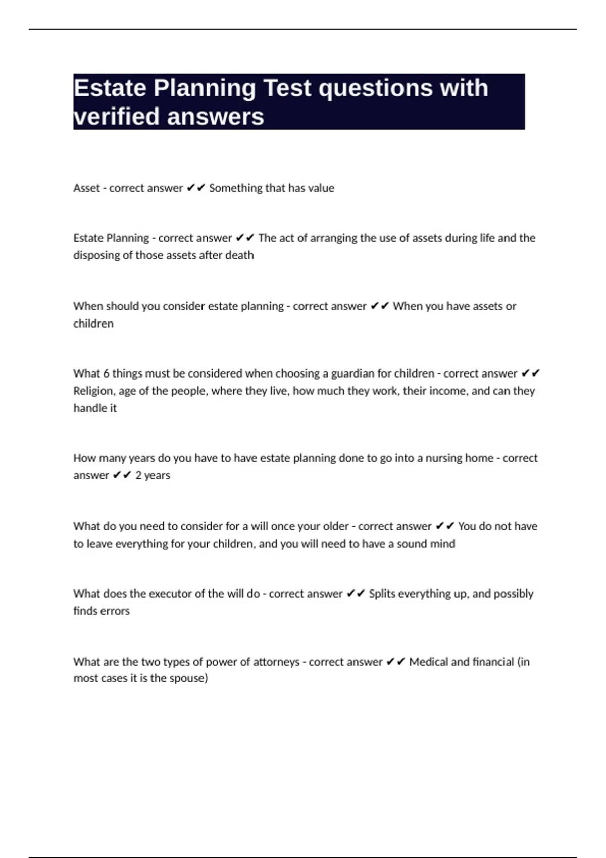 When should you consider estate planning - correct answer ✔✔ When you have assets or