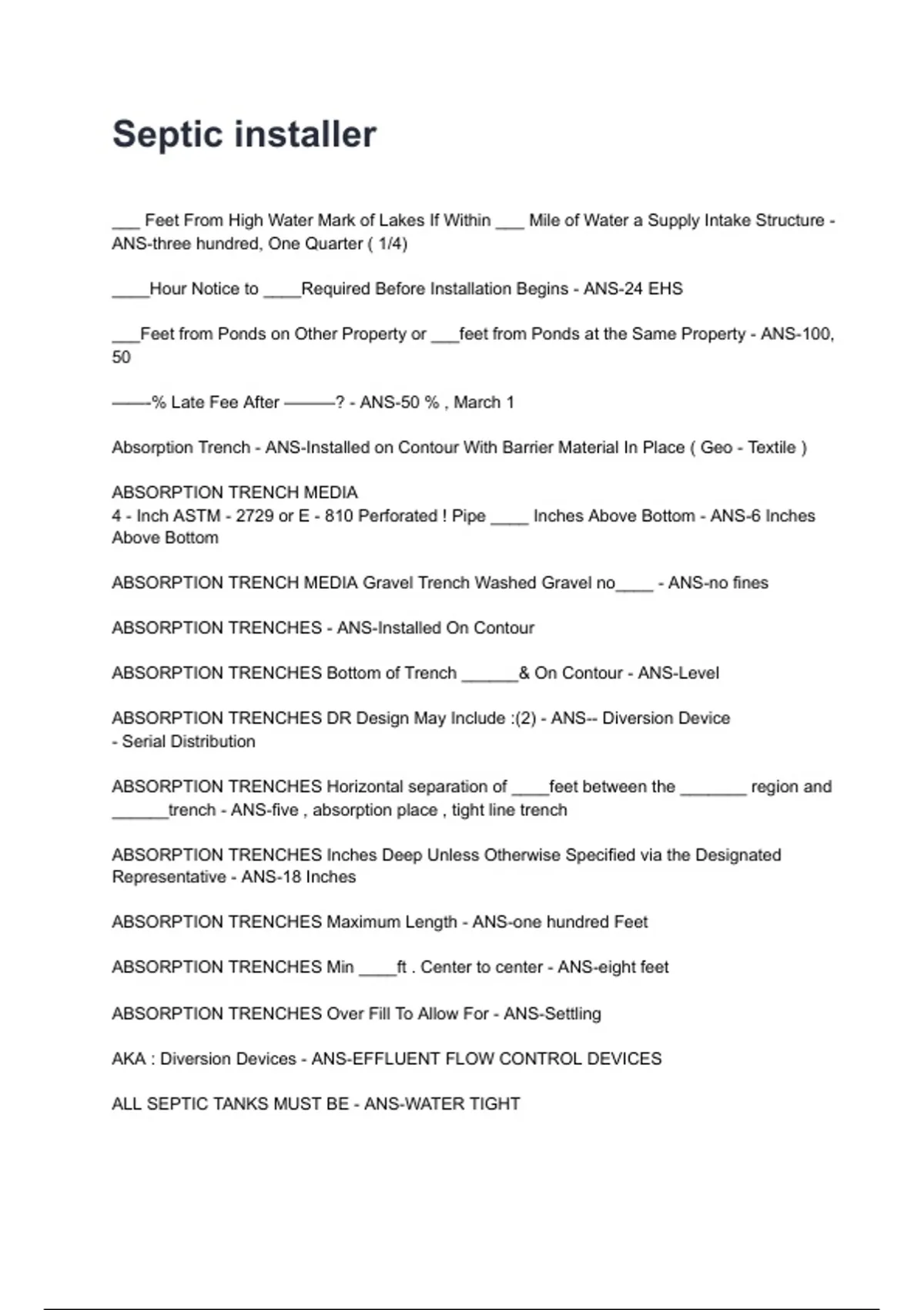 ABSORPTION TRENCHES Min ____ft . Center to center - ANS-eight feet