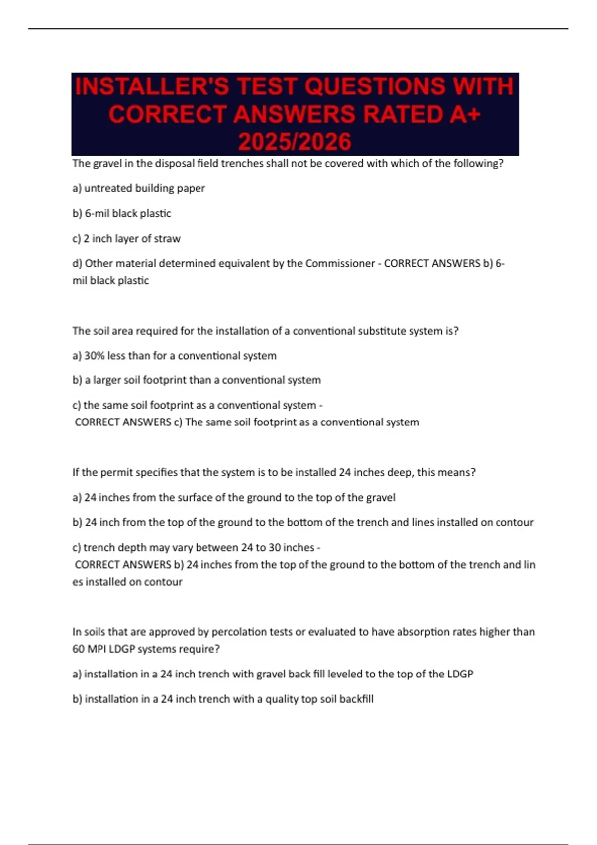 INSTALLER'S TEST QUESTIONS WITH CORRECT ANSWERS RATED A+ 2025/2026