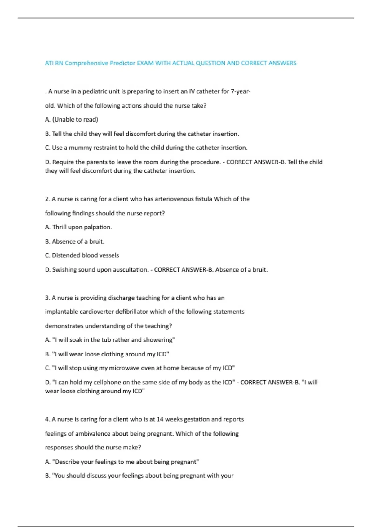 ATI RN Comprehensive Predictor EXAM WITH ACTUAL QUESTION AND CORRECT ANSWERS
