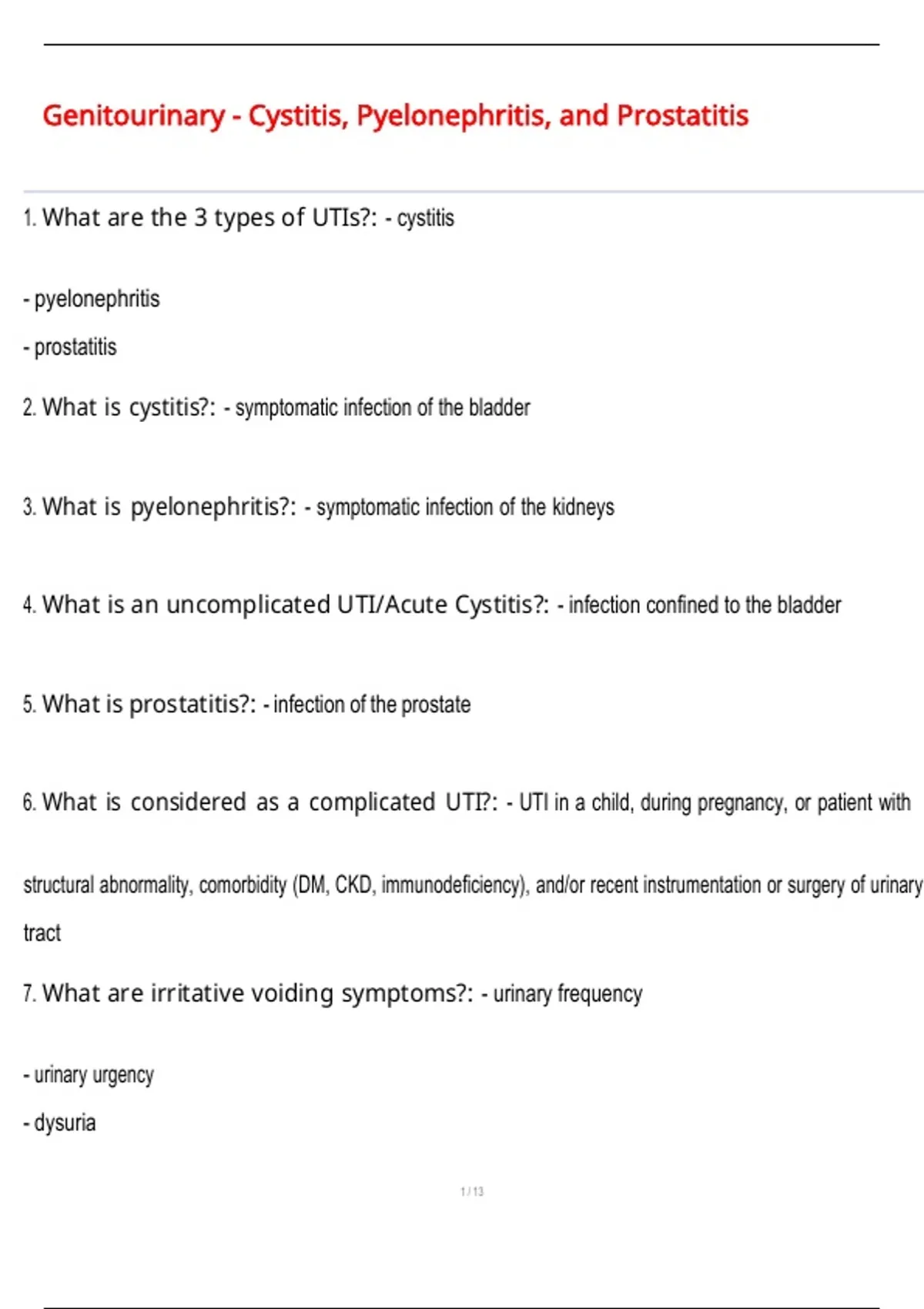 Genitourinary - Cystitis, Pyelonephritis, and Prostatitis