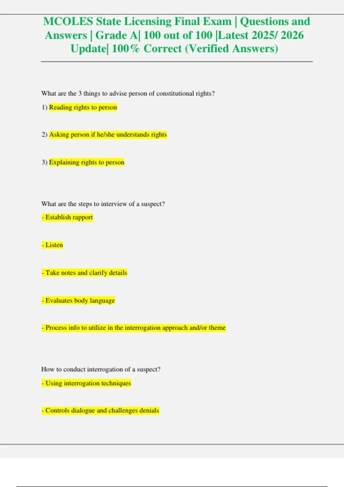 ,MCOLES State Licensing Final Exam | Questions and