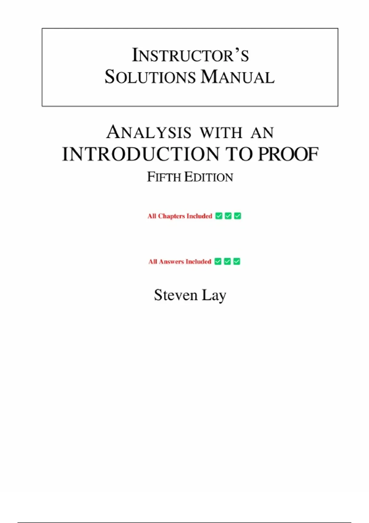 Analysis with an Introduction to Proof, 5th Edition – Steven R. Lay | Complete Solutions Manual