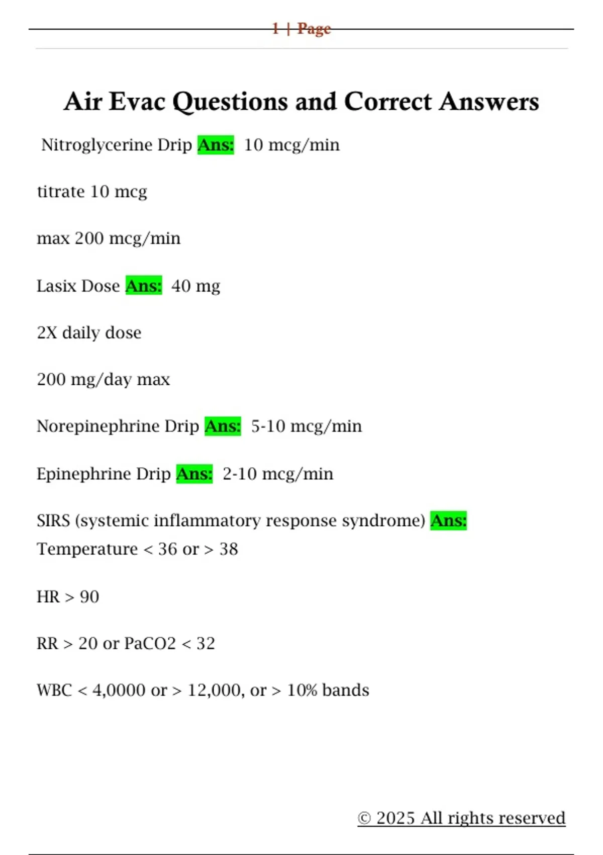 Air Evac Questions and Correct Answers