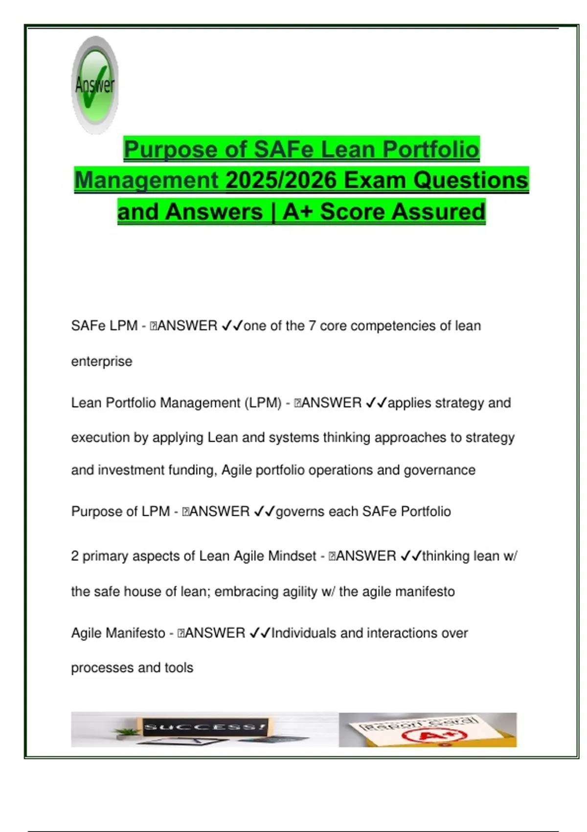 Purpose of LPM - 🧠ANSWER ✔✔governs each SAFe Portfolio