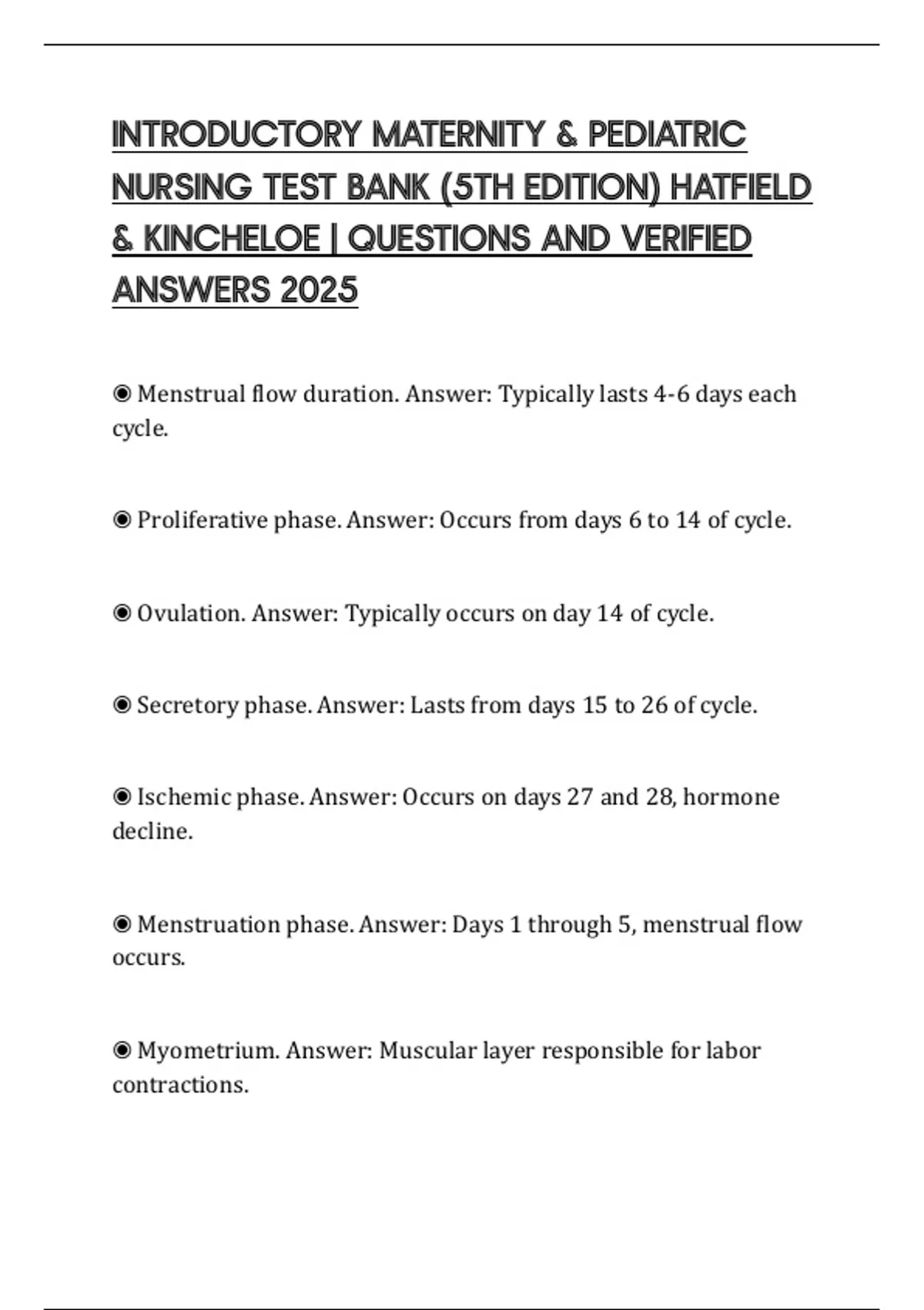INTRODUCTORY MATERNITY & PEDIATRIC NURSING TEST BANK (5TH EDITION) HATFIELD & KINCHELOE | QUESTIONS AND VERIFIED ANSWERS 2025
