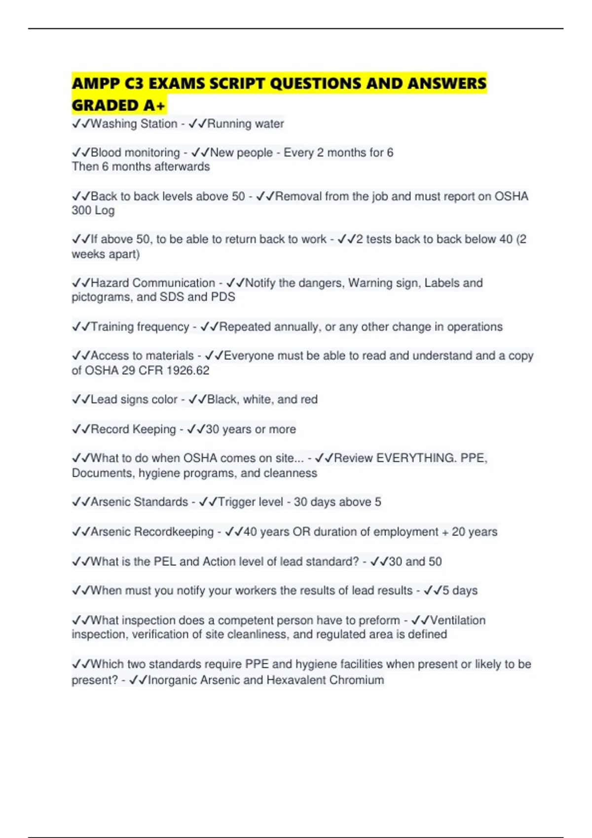 AMPP C3 EXAMS SCRIPT QUESTIONS AND ANSWERS GRADED A+
