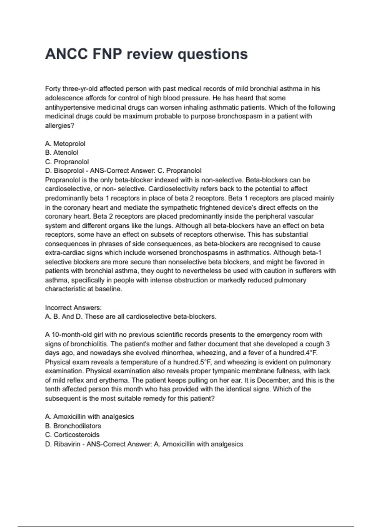 D. Bisoprolol - ANS-Correct Answer: C. Propranolol