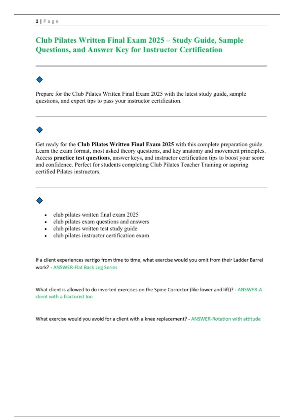 • club pilates exam questions and answers