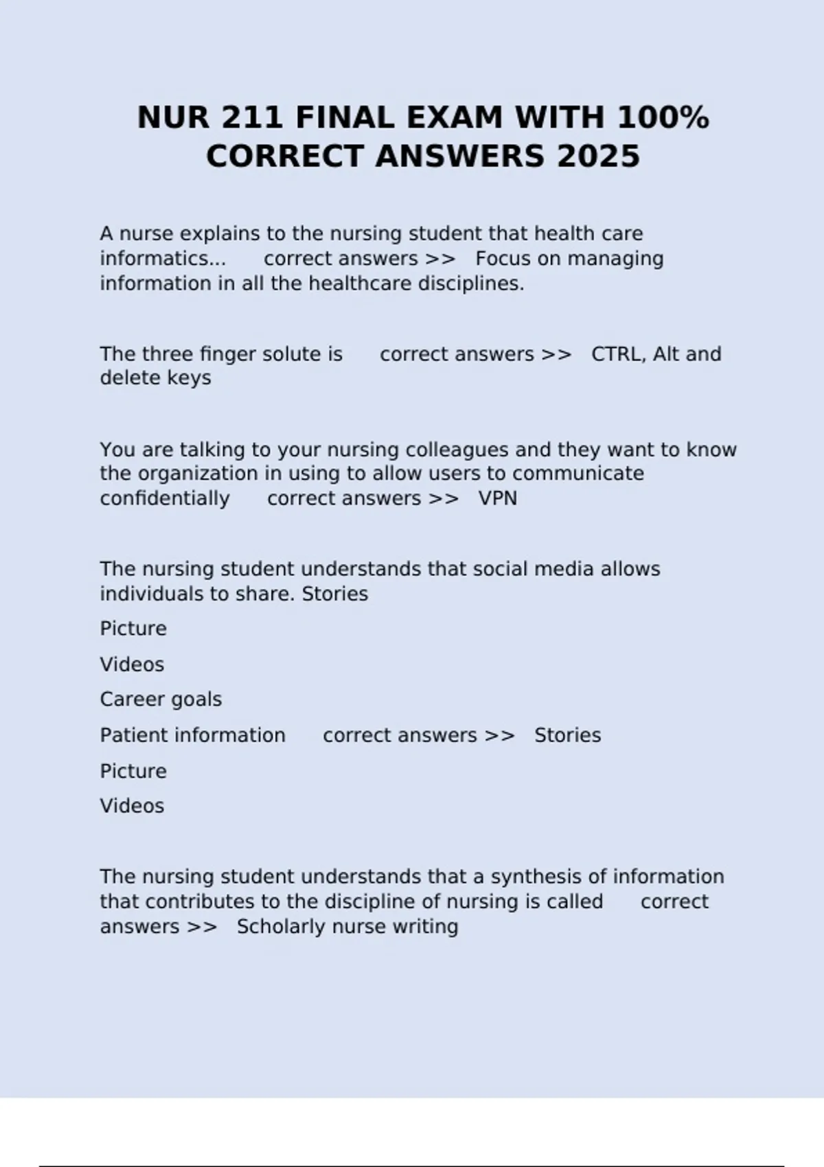 NUR 211 FINAL EXAM WITH 100% CORRECT ANSWERS 2025