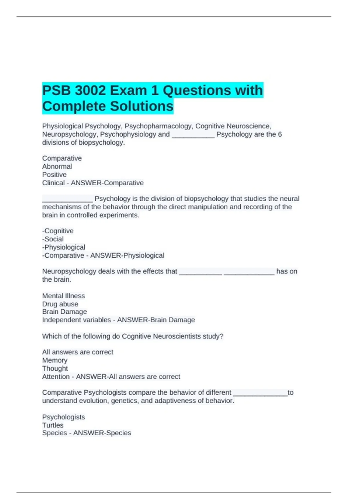PSB 3002 Exam 1 Questions with Complete Solutions