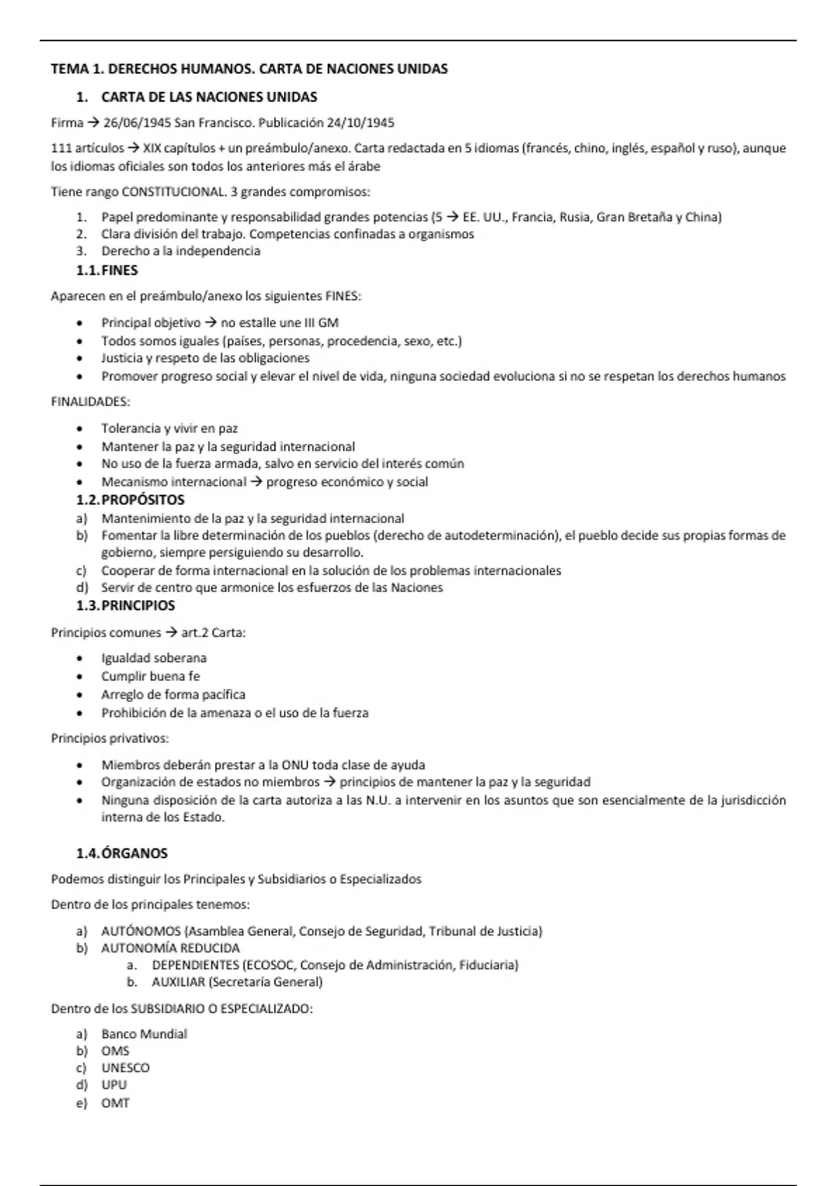 TEMA 1. DERECHOS HUMANOS. CARTA DE NACIONES UNIDAS