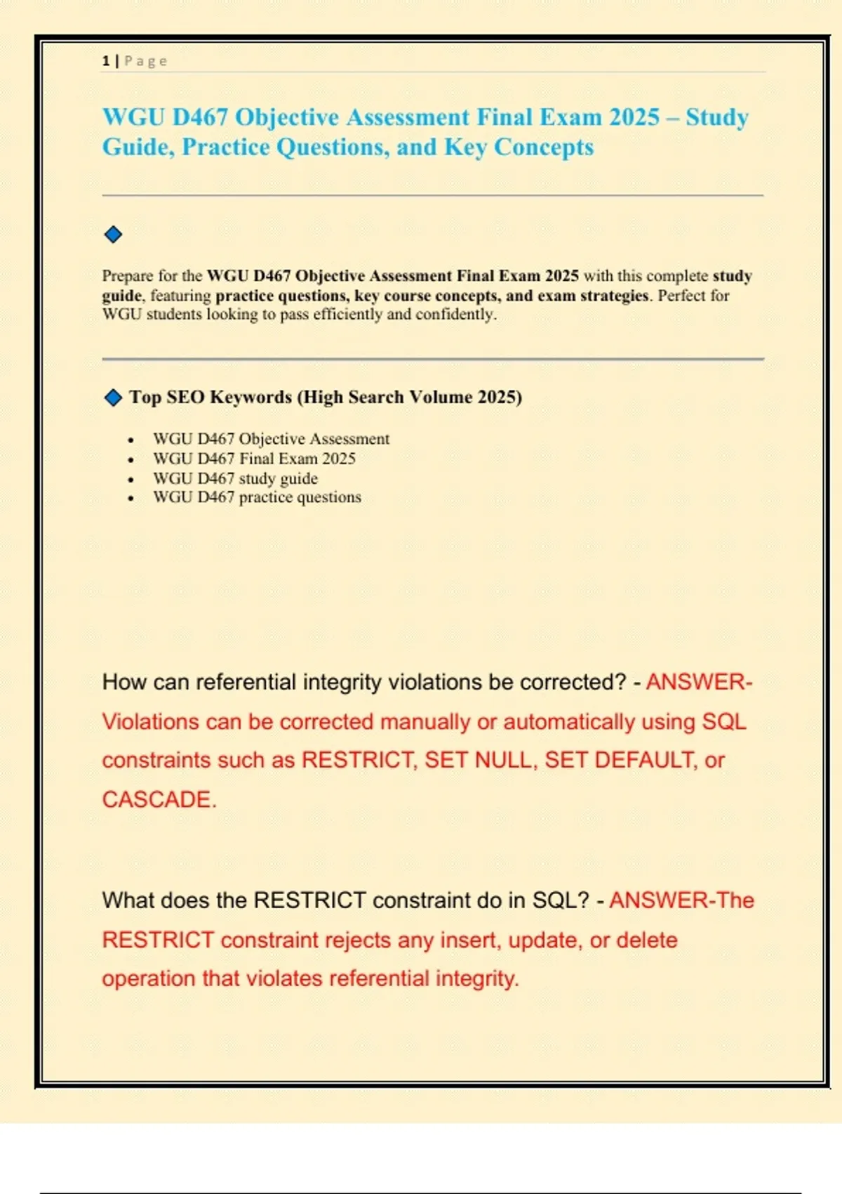 Prepare for the WGU D467 Objective Assessment Final Exam 2025 with this complete study