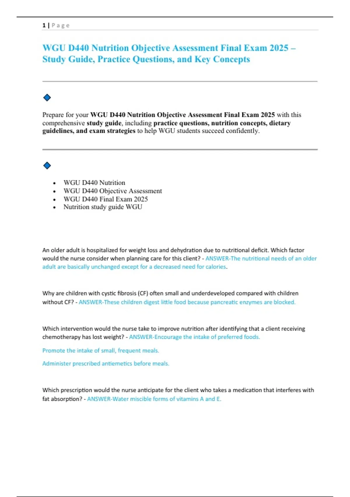 Prepare for your WGU D440 Nutrition Objective Assessment Final Exam 2025 with this