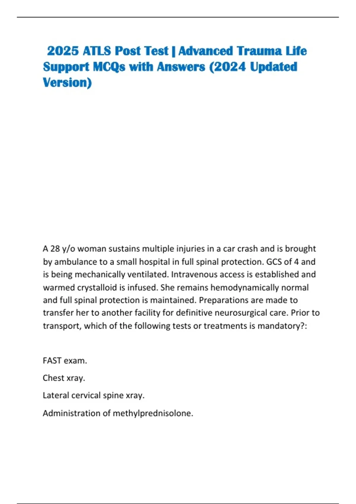 2025 ATLS Post Test | Advanced Trauma Life Support MCQs with Answers (2024 Updated Version)