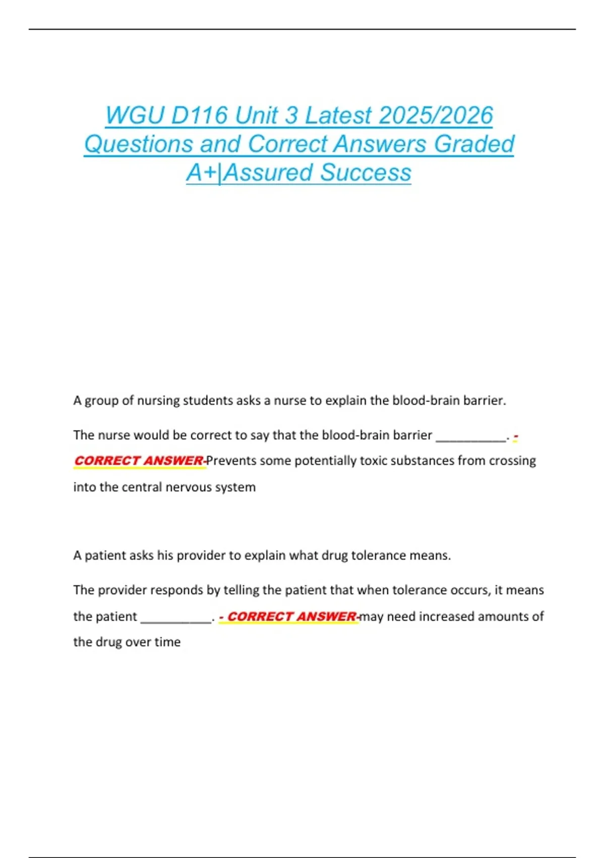 WGU D116 Unit 3 Latest 2025/2026 Questions and Correct Answers Graded A+|Assured Success