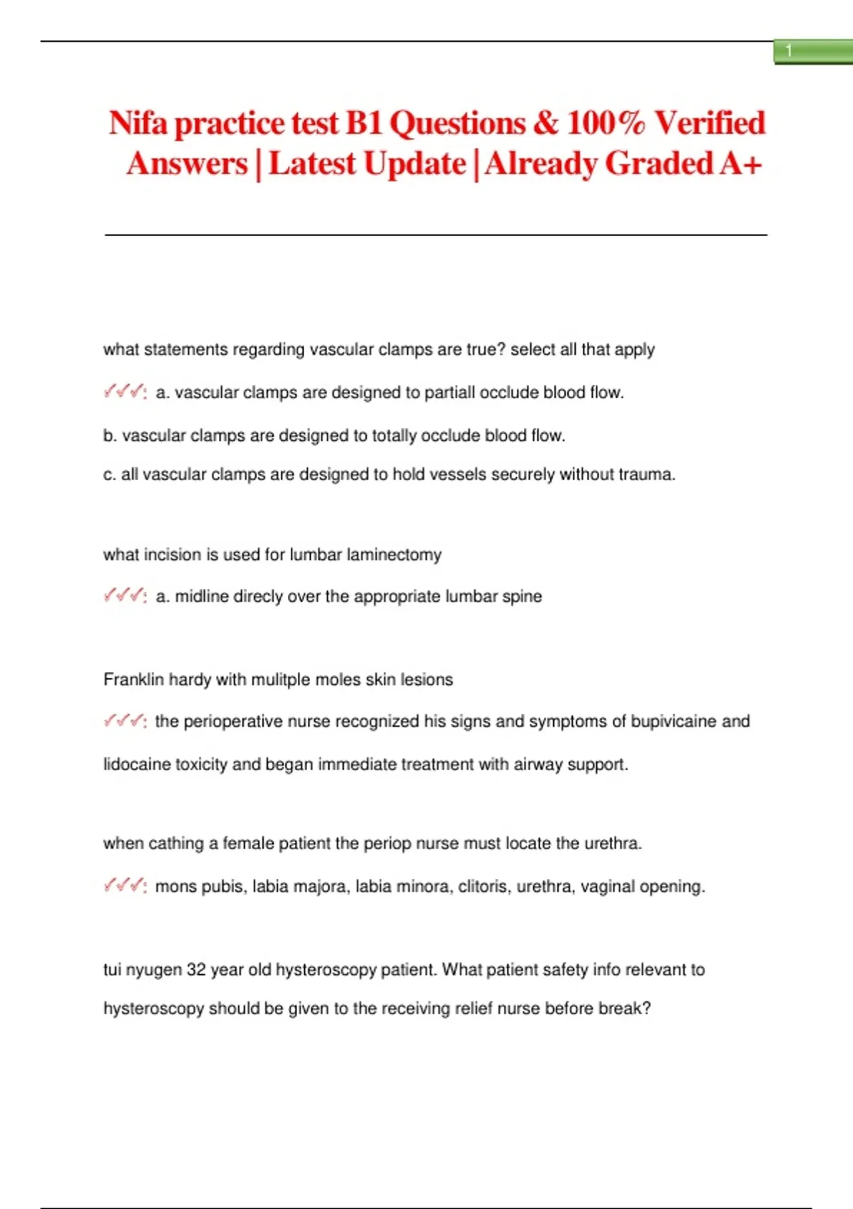 Nifa practice test B1 Questions & 100% Verified