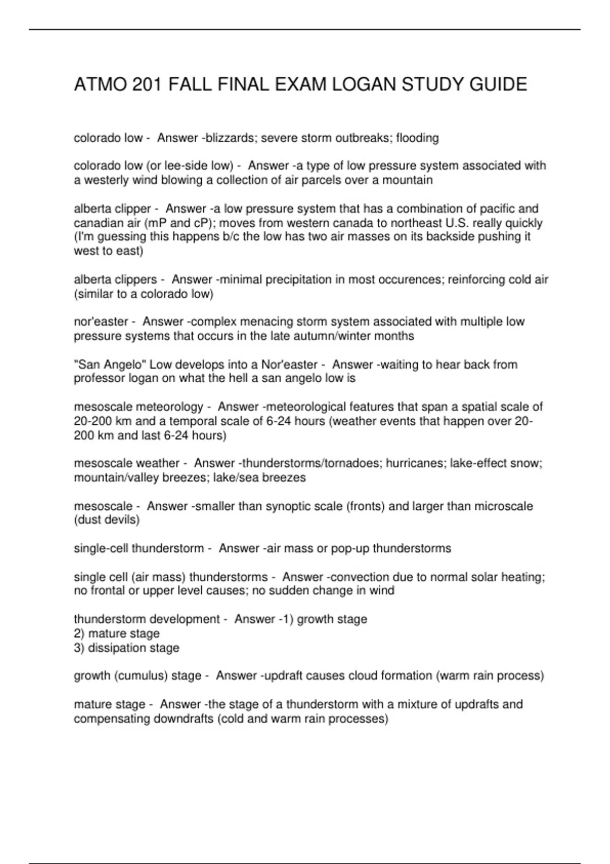 ATMO 201 FALL FINAL EXAM LOGAN STUDY GUIDE