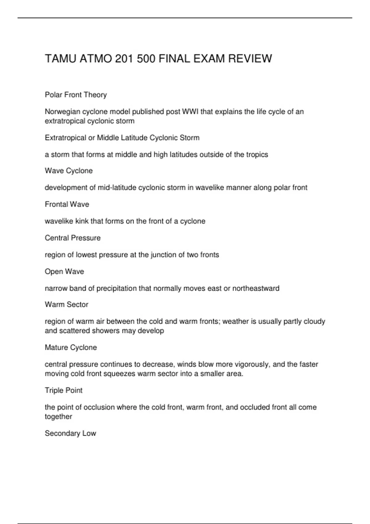 TAMU ATMO 201 500 FINAL EXAM REVIEW