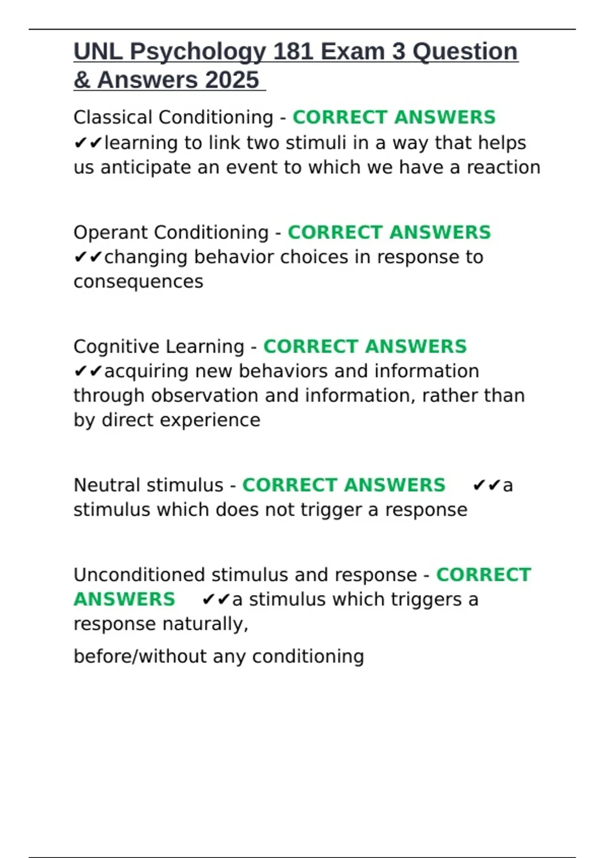 UNL Psychology 181 Exam 3 Question & Answers 2025.docx