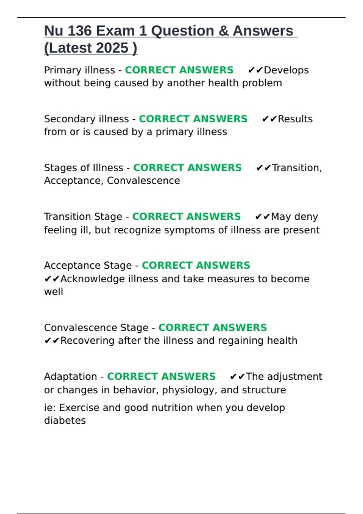 Nu 136 Exam 1 Question & Answers (Latest 2025 ).docx