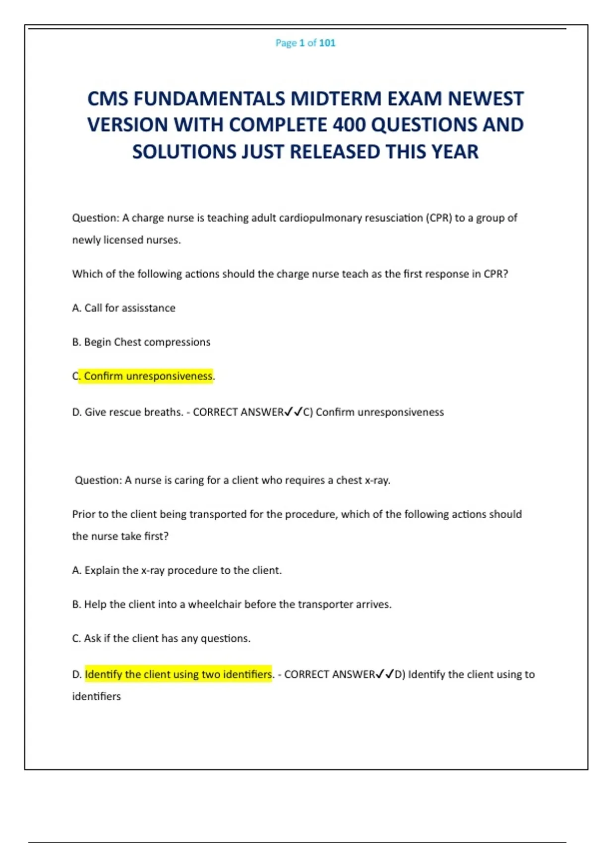 CMS FUNDAMENTALS MIDTERM EXAM NEWEST VERSION WITH COMPLETE 400 QUESTIONS AND SOLUTIONS JUST RELEASED THIS YEAR