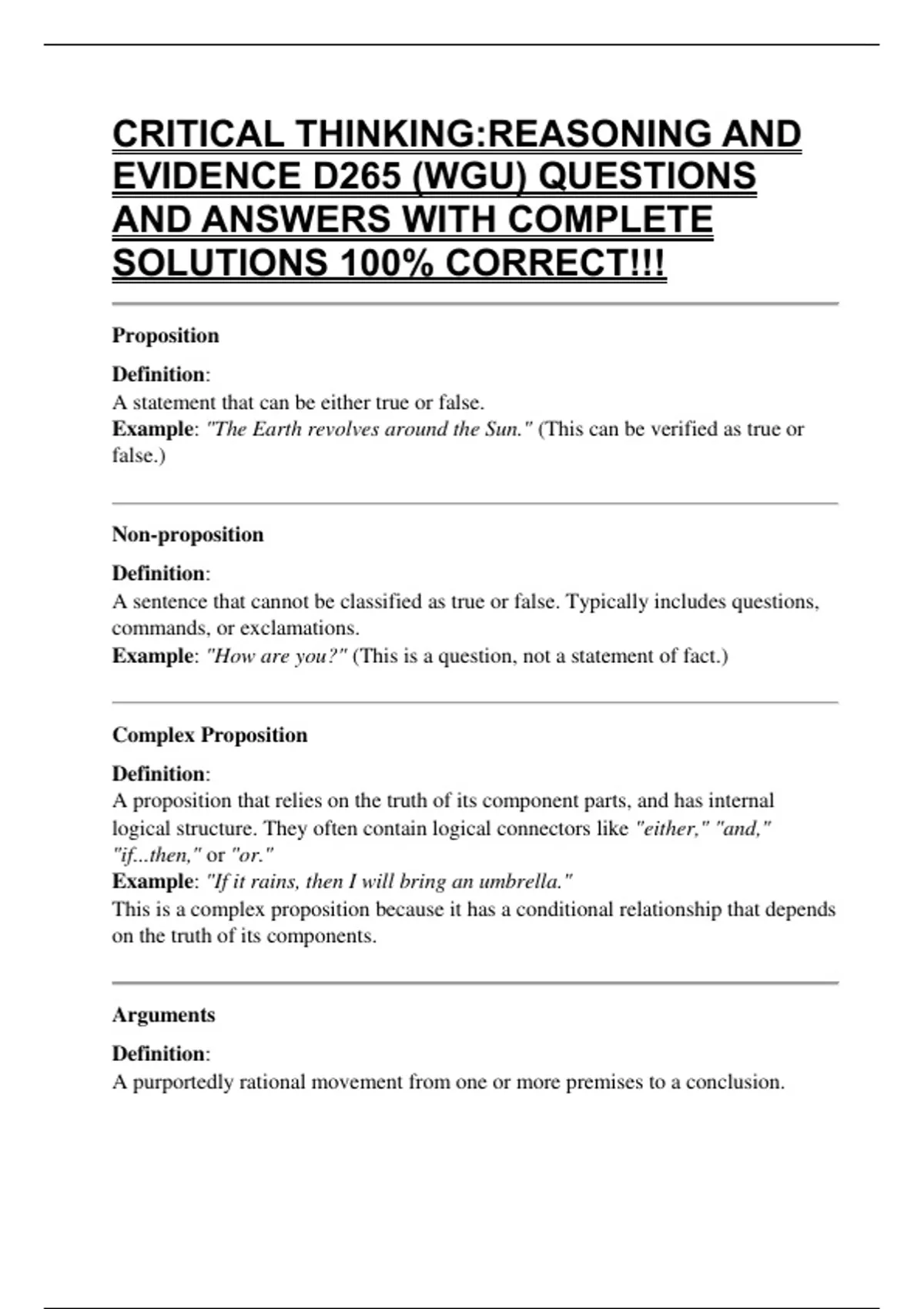 Conclusion -ANSWER✔✔A statement supported by an arguments premises