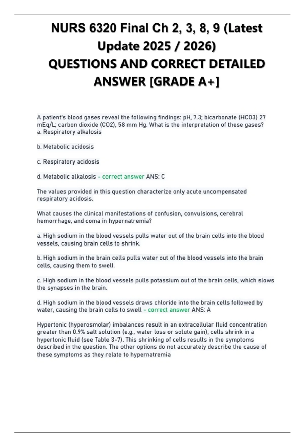 NURS 6320 Final Ch 2, 3, 8, 9 (Latest Update 2025 / 2026) QUESTIONS AND CORRECT DETAILED ANSWER [GRADE A+]