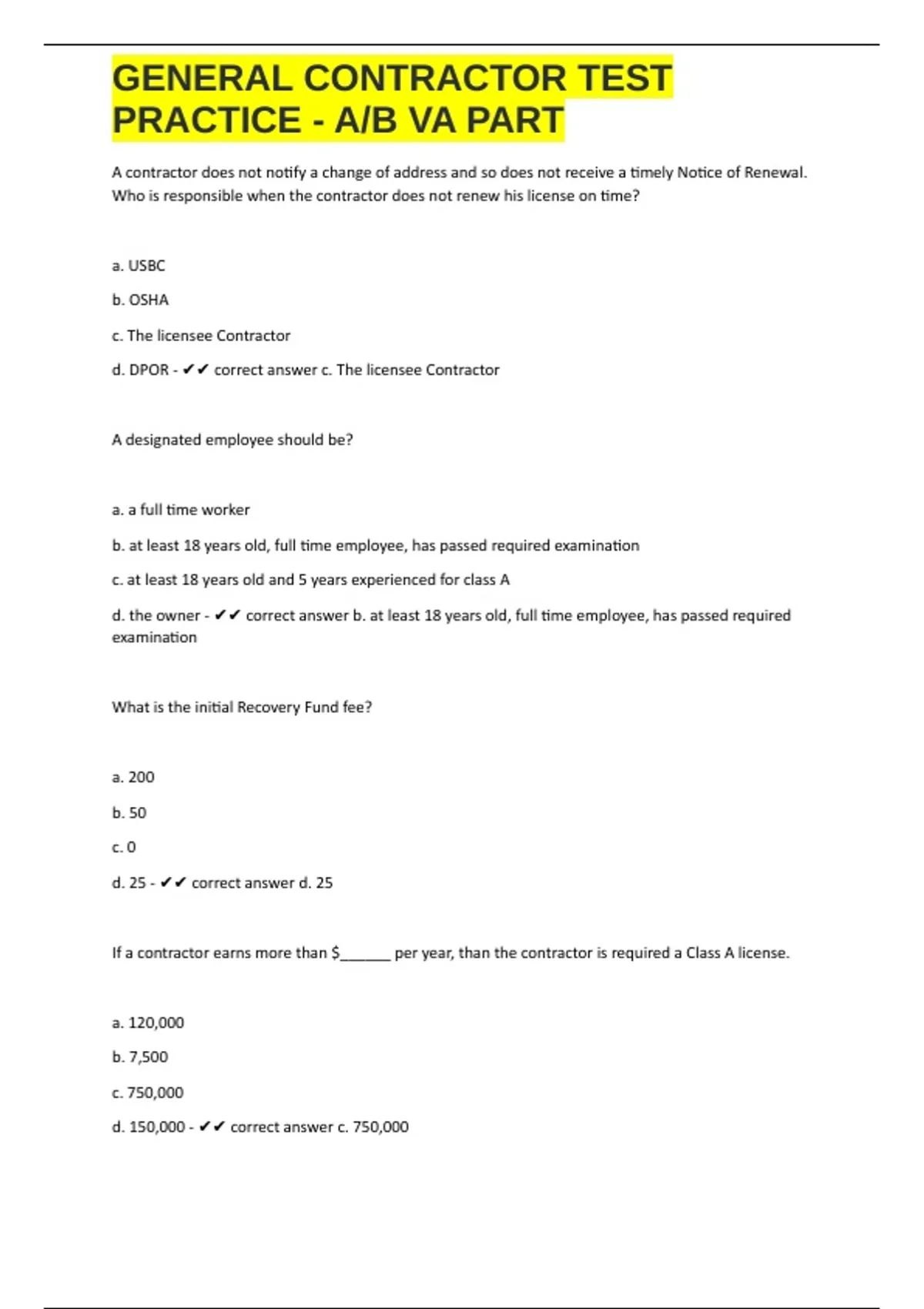 d. DPOR - ✔✔ correct answer c. The licensee Contractor