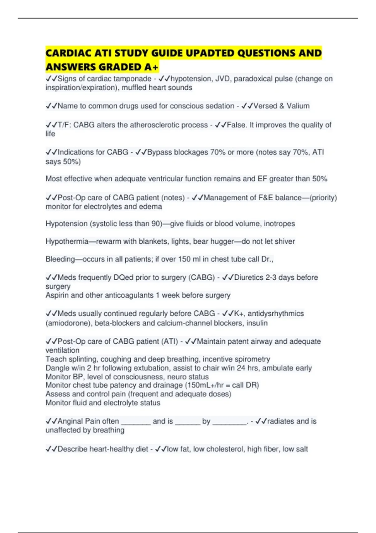 ✔✔Post-Op care of CABG patient (ATI) - ✔✔Maintain patent airway and adequate