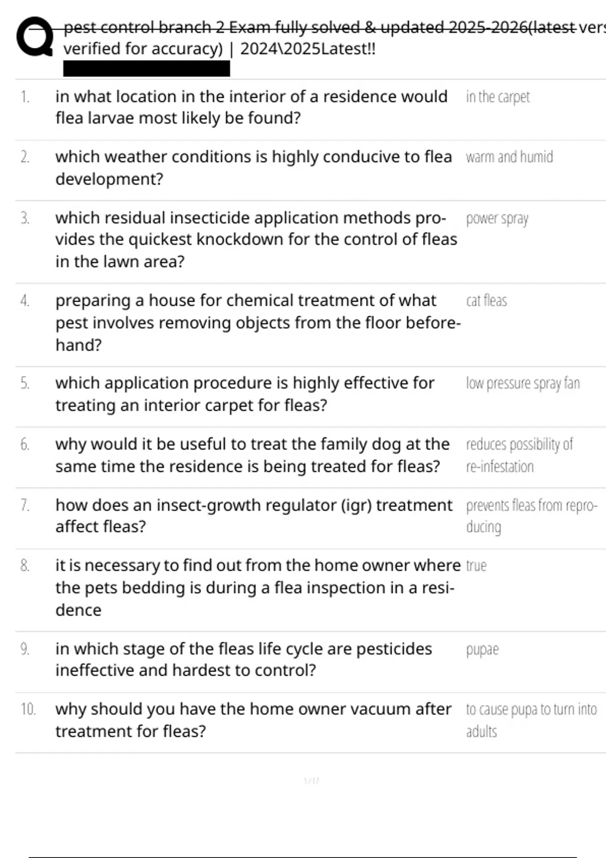 , pest control branch 2 Exam fully solved & updated 2025-2026(latest vers
