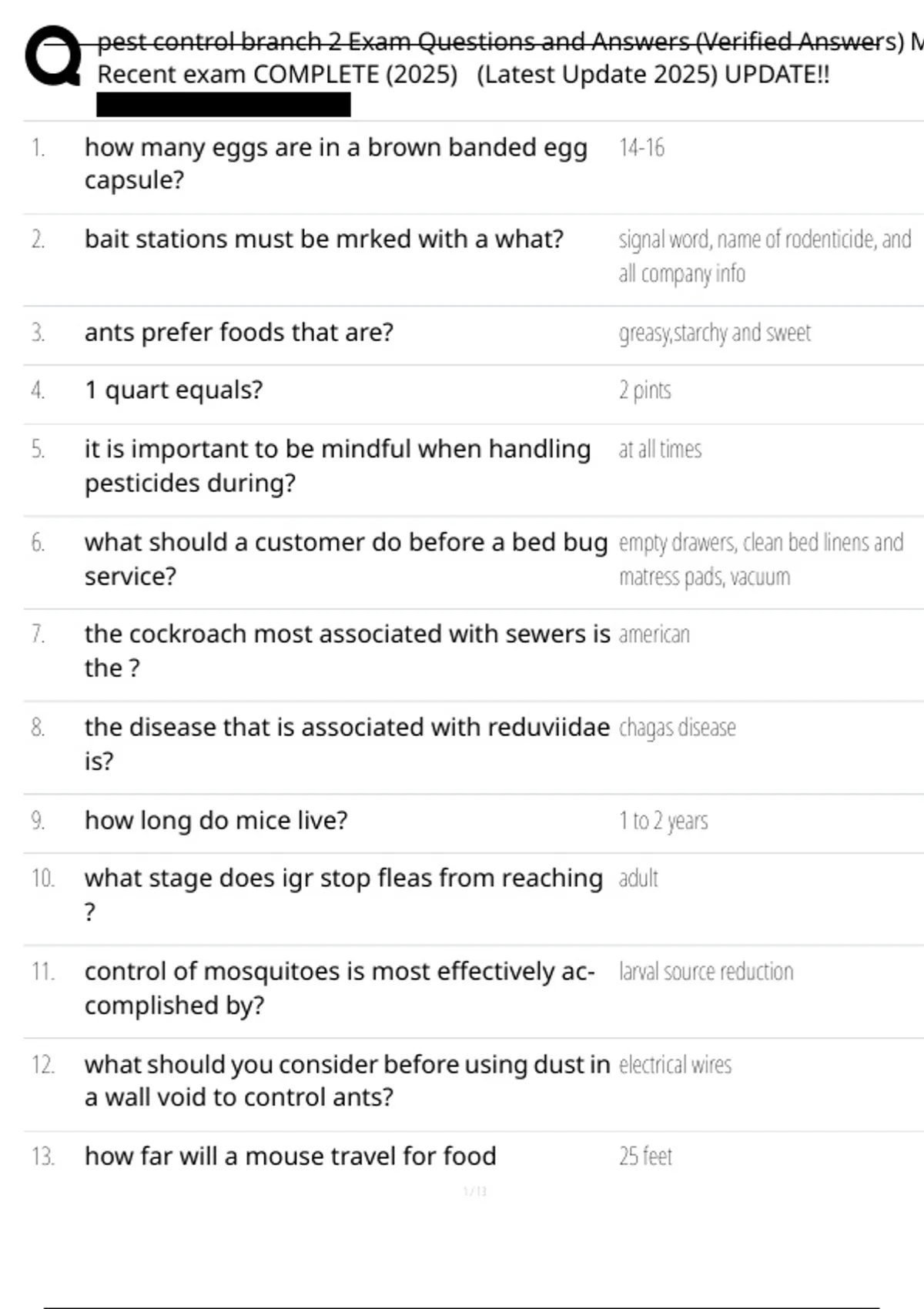 pest control branch 2 Exam fully solved & updated (latest versioverified for accuracy) | Latest!!