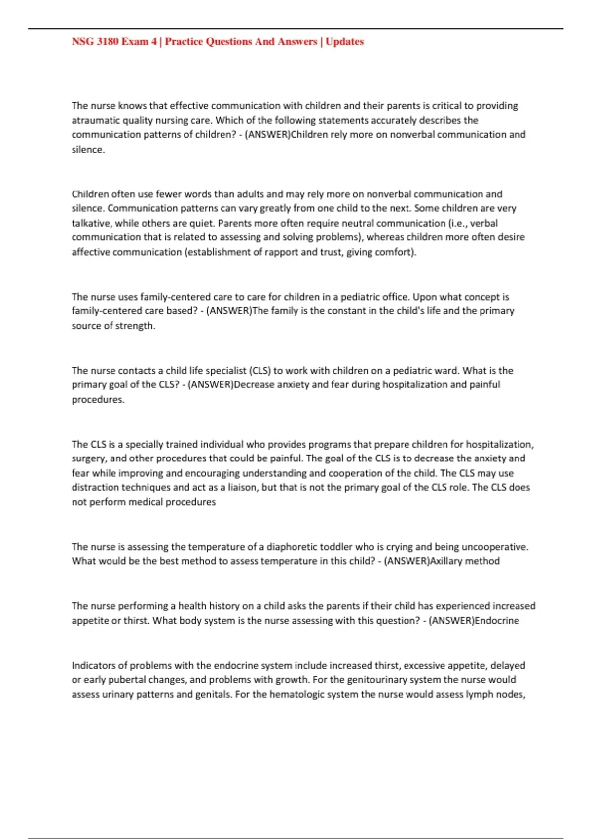 NSG 3180 Exam 4 | Practice Questions And Answers | Updates