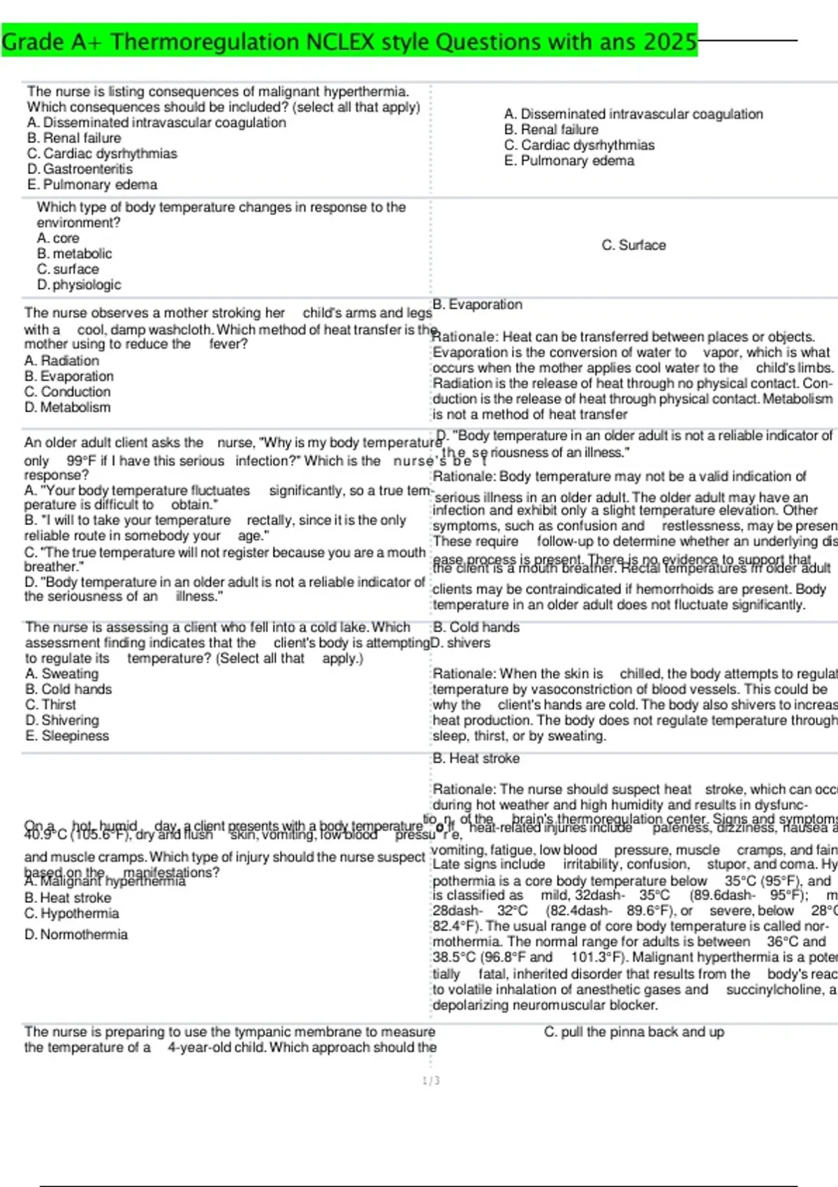 Rationale: The nurse should suspect heat stroke, which can occu