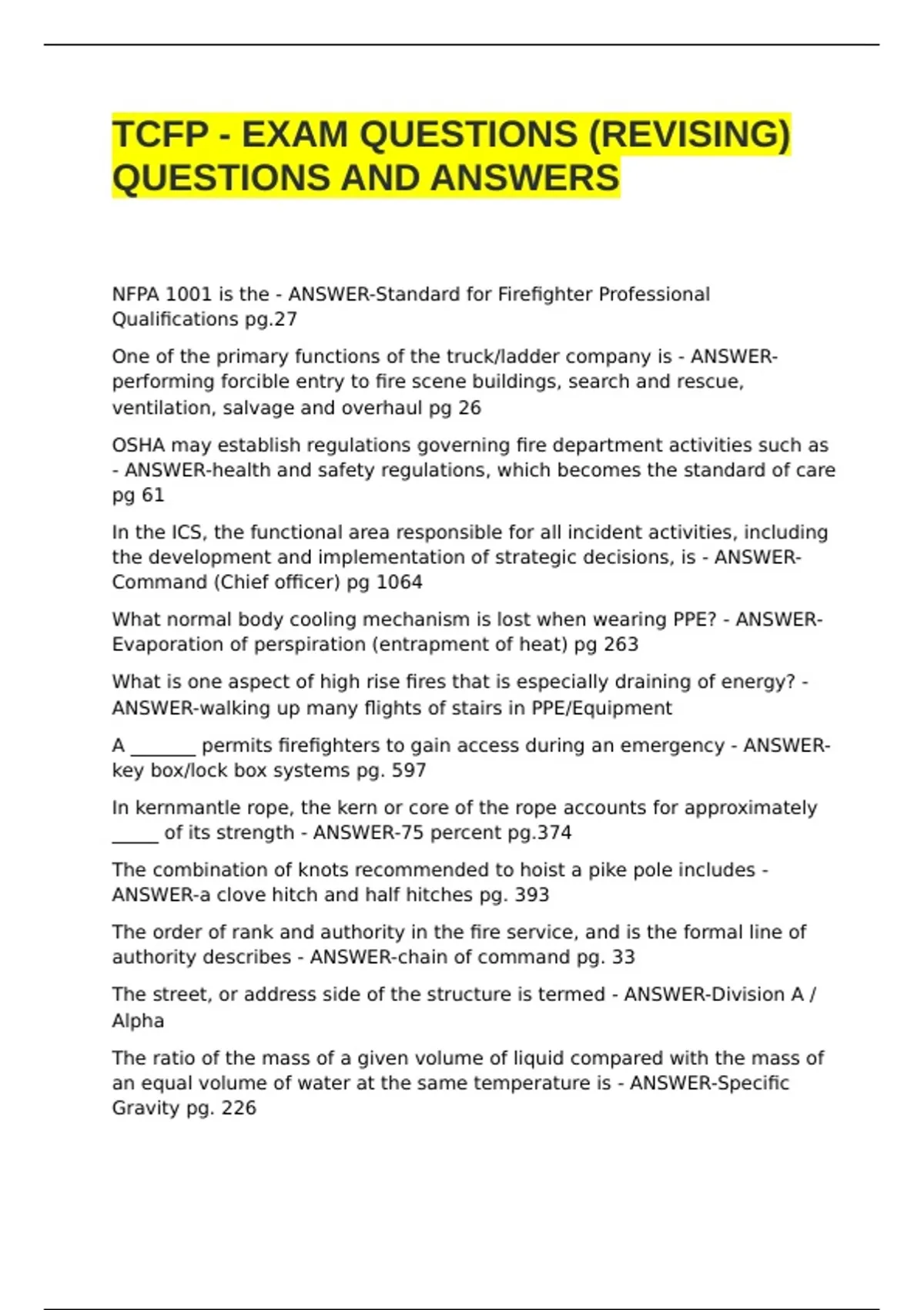TCFP - EXAM QUESTIONS (REVISING) QUESTIONS AND ANSWERS