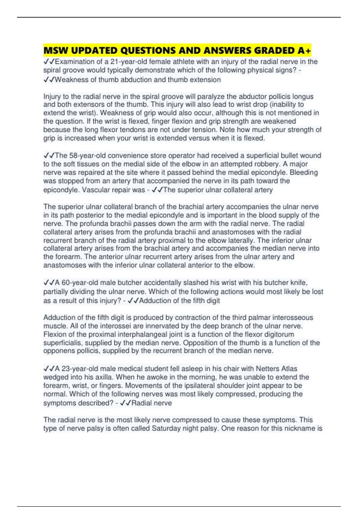 MSW UPDATED QUESTIONS AND ANSWERS GRADED A+